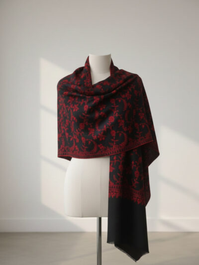 292.33$• Pure handwoven pashmina with a soft, cloud-light texture • Exquisite red Sozni embroidery blooming across a deep black base • Warm, breathable, and crafted through slow, detailed artistry -